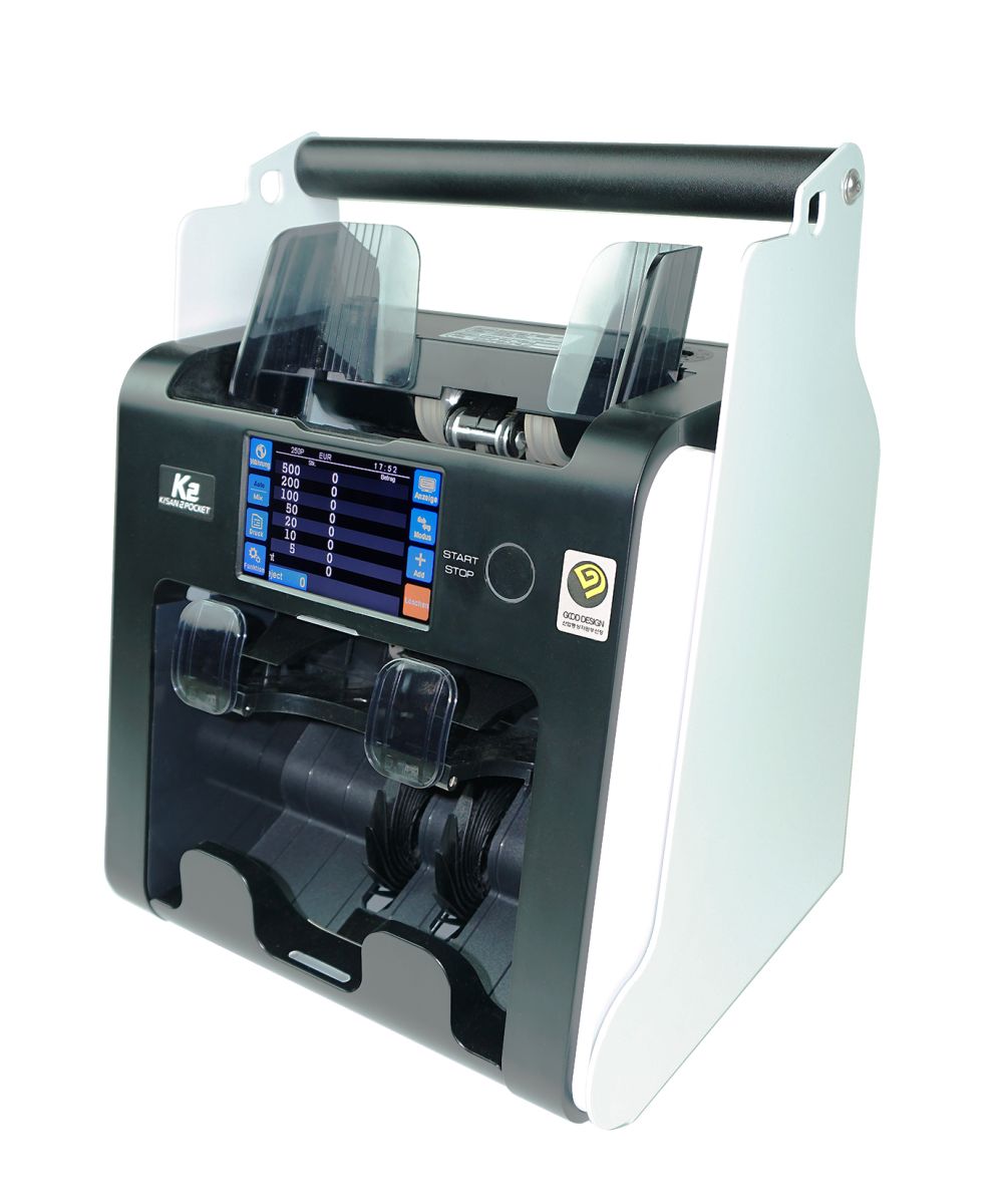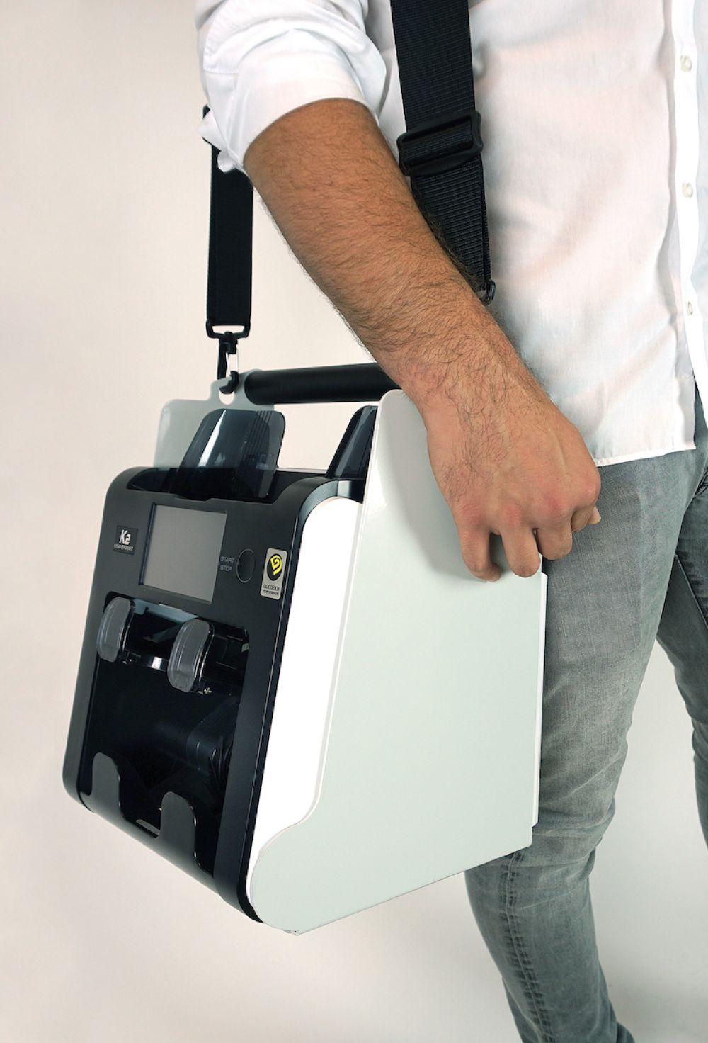 Die Kisan K2 Geldzählmaschine ist die leichte und schnelle Maschine für alle Branchen für Netzbetrieb im Trageset
